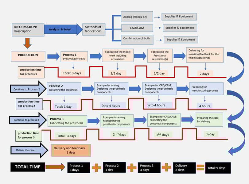Mapping workflows in a dental lab involves creating a visual representation of how orders move through the production process, from the moment a case is received to the delivery of the final dental prosthetic or appliance.