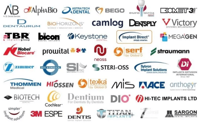 Straumann, Nobel Biocare, Zimmer, BioHorizons, Astra Tech, MIS Implants, Dentsply Ankylos, and Bicon – it's a dental showdown! Each one claims its implant is the superhero of the mouth!!!