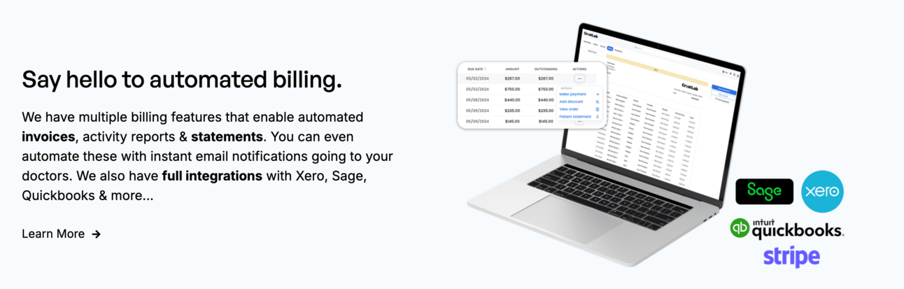 GreatLab is designed to take the pain out of daily management tasks. You can automate almost everything – from generating invoices to tracking cases through their different stages.